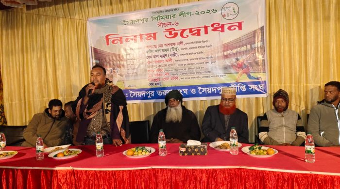 সৈয়দপুর প্রিমিয়ার লিগ আসর-৬ এর উদ্বোধনী ম্যাচ আগামী ৩১ জানুয়ারি উদ্বোধনের মধ্যে দিয়ে পর্দায় উঠবে এবং নিলাম অনুষ্ঠানে নিবন্ধনকৃত ১৫০ জন খেলোয়াড়’সহ অসংখ্য ক্রিকেটপ্রেমী’রা নিলাম অনুষ্ঠানে অংশগ্রহন করেন।