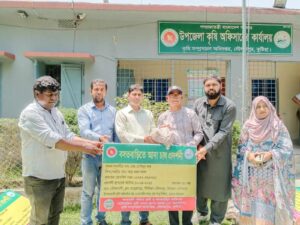 বৃদ্ধির লক্ষ্যে ক্ষুদ্র ও প্রান্তিক কৃষকদের মাঝে বিনামূল্যে বীজ ও রাসায়নিক সার বিতরনের উদ্বোধন করা হয়েছে। তিনি আরো জানান ১৫০০ জন ক্ষুদ্র ও প্রন্তিক কৃষকদের মাঝেপাটের বীজ ১ কেজি, ৫ কেজি ডিএফপি ও ৫ কেজি এমওপি সার প্রদান করা হয়েছে। এছাড়াও, একদিন দুপুরে অনাবাদি পতিত জমি ও বসতবাড়ীর আঙ্গিনায় পারিবারিক পুষ্টি বাগান স্থাপন প্রকল্পের আওতায় কৃষক-কৃষাণীদের মাঝে প্রদর্শনী উপকরণ বিতরণ করা হয় ।