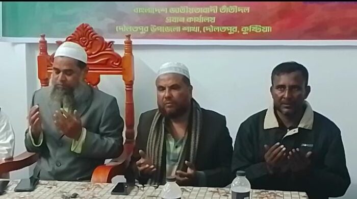 দৌলতপুর প্রতিনিধি কুষ্টিয়া  কুষ্টিয়া দৌলতপুর উপজেলা তাঁতী দলের আয়োজনে বেগম খালেদা জিয়ার রোগমুক্তি কামনায় দোয়া মাহফিল অনুষ্ঠিত হয়েছে।   দৌলতপুর উপজেলা তাঁতী দলের প্রধান কার্যালয়ে শুক্রবার সন্ধ্যায় দৌলতপুর উপজেলা তাঁতী