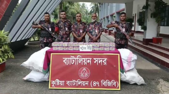 দৌলতপুর (কুষ্টিয়া) প্রতিনিধিঃ কুষ্টিয়া ব্যাটালিয়ন (৪৭ বিজিবি) এর ধারাবাহিক মাদক ও চোরাচালানবিরোধী অভিযানে দৌলতপুর উপজেলার সীমান্ত এলাকা থেকো মালিকবিহীন অবস্থায় ৫.৫০০ কেজি ভারতীয় রৌপ্য ও ৪২০০ প্যাকেট অবৈধ নকল বিড়ি