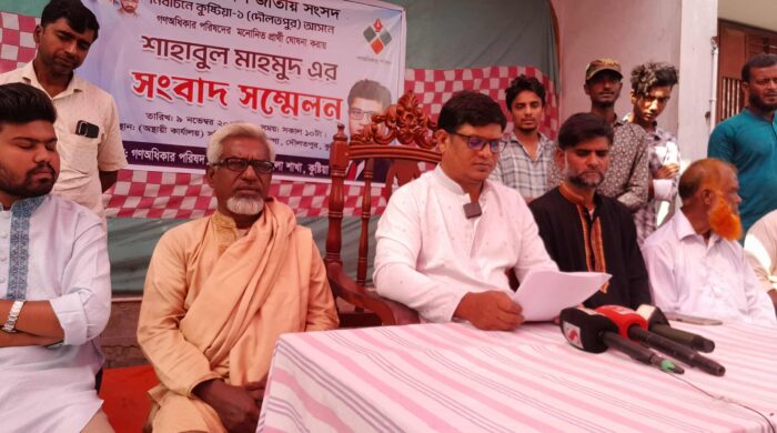 খন্দকার জালাল উদ্দীন : কুষ্টিয়ার দৌলতপুর উপজেলার আল্লারদর্গা গণ অধিকার কার্যালয়ে আসন্ন ত্রয়োদশ জাতীয় সংসদ নির্বাচনে কুষ্টিয়া-১ (দৌলতপুর) আসনে গণবাধিকার পরিষদের মনোনীত সাহাবুল মুহাম্মদ কে প্রার্থী ঘোষণা করায় সংবাদ সম্মেলন