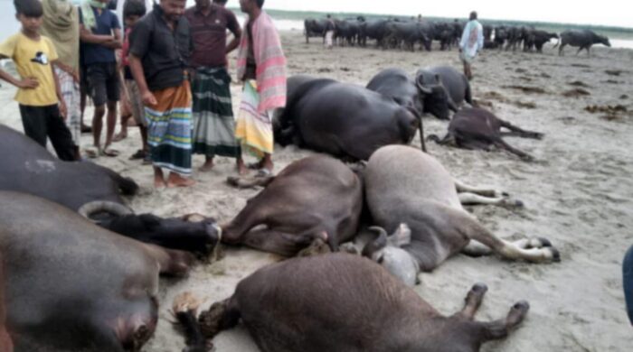 খন্দকার জালাল উদ্দীন: কুষ্টিয়ার দৌলতপুর উপজেলার চিলমারীর বাংলা বাজার পদ্মা নদীর চরে ৩ আগস্ট রোববার ভোর রাতে বজ্রপাতে ১১ টি মহিষের মৃত্যু ঘটেছে। যার আনুমানিক মূল্য প্রাই ২০ লক্ষা ধিক