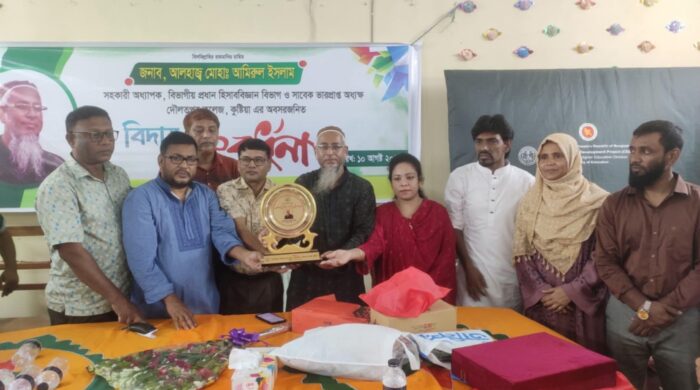 দৌলতপুর প্রতিনিধিঃ কুষ্টিয়ার দৌলতপুর কলেজের হিসাববিজ্ঞান বিভাগের আয়োজনে লালনশাহ ভবন হল রুমে রোববার বেলা ১১টায় সহকারী অধ্যাপক,হিসাববিজ্ঞান বিভাগের বিভাগীয় প্রধান ও সাবেক ভারপ্রাপ্ত অধ্যক্ষ আলহাজ্ব মোঃ আমিরুল ইসলাম এর অবসরজনিত