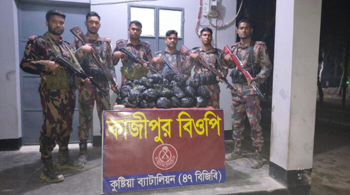 কুষ্টিয়ার  দৌলতপুর সীমান্তে সুনির্দিষ্ট গোয়েন্দা তথ্যের ভিত্তিতে কুষ্টিয়া ব্যাটালিয়ন (৪৭ বিজিবি) এর অধীনস্থ কাজীপুর বিওপির দায়িত্বপূর্ণ এলাকার সীমান্ত পিলার ১৪৬/৩-এস হতে আনুমানিক ১০০ গজ বাংলাদেশের অভ্যন্তরে কাজীপুর বর্ডারপাড়া মাঠ নামক