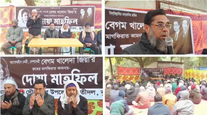 কুষ্টিয়ার দৌলতপুর উপজেলা বিএনপি’রউদ্যোগে দৌলতপুর উপজেলা বিএনপির সভাপতি, সাবেক সংসদ সদস্য, বিএনপির জাতীয় নির্বাহী কমিটির সদস্য আলহাজ্ব রেজা আহমেদ বাচ্চু মোল্লার নির্দেশে বিএনপি চেয়ারপারসন,পরপর তিনবার নির্বাচিত সাবেক প্রধানমন্ত্রী, আপোষহীন দেশনেত্রী,